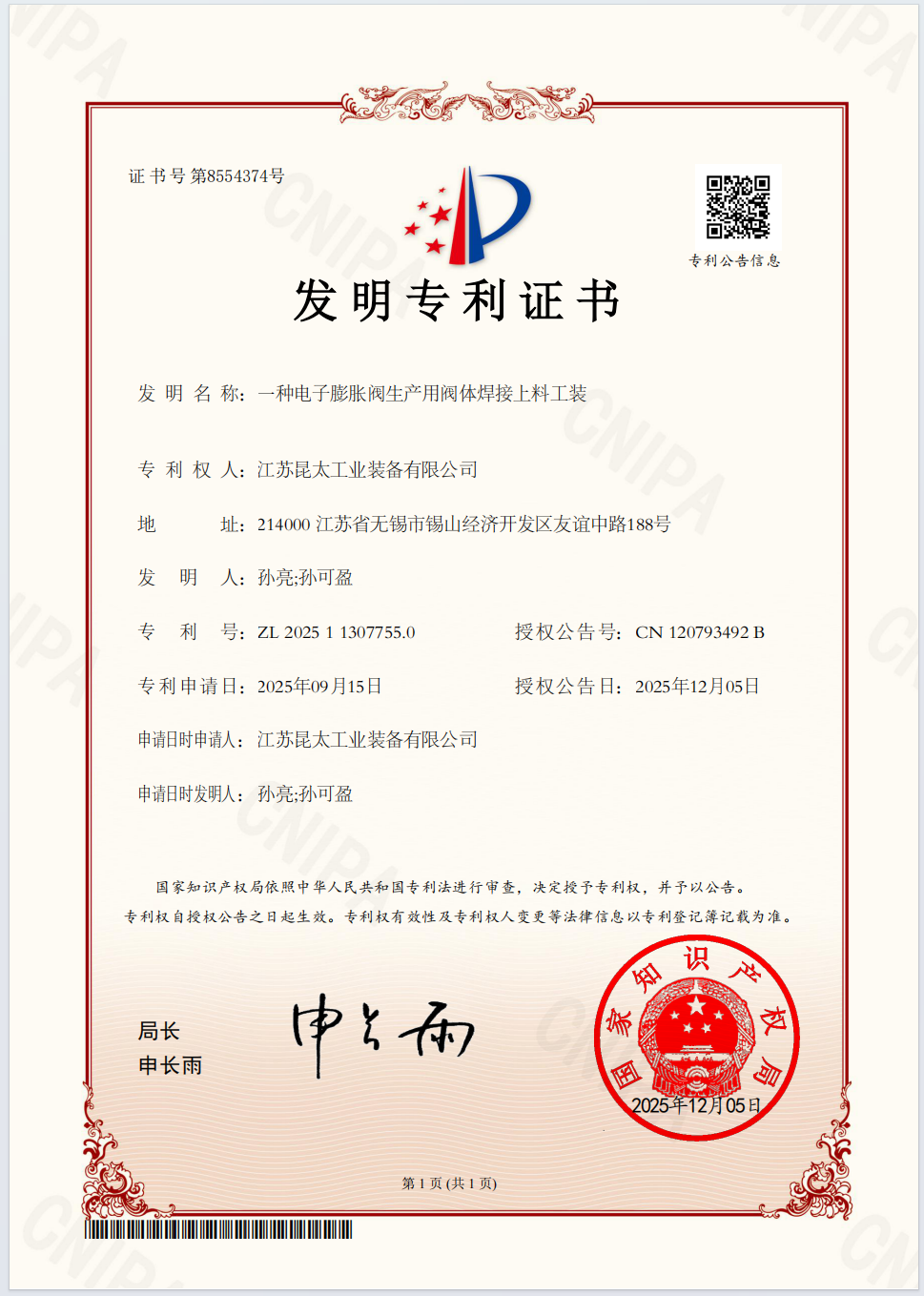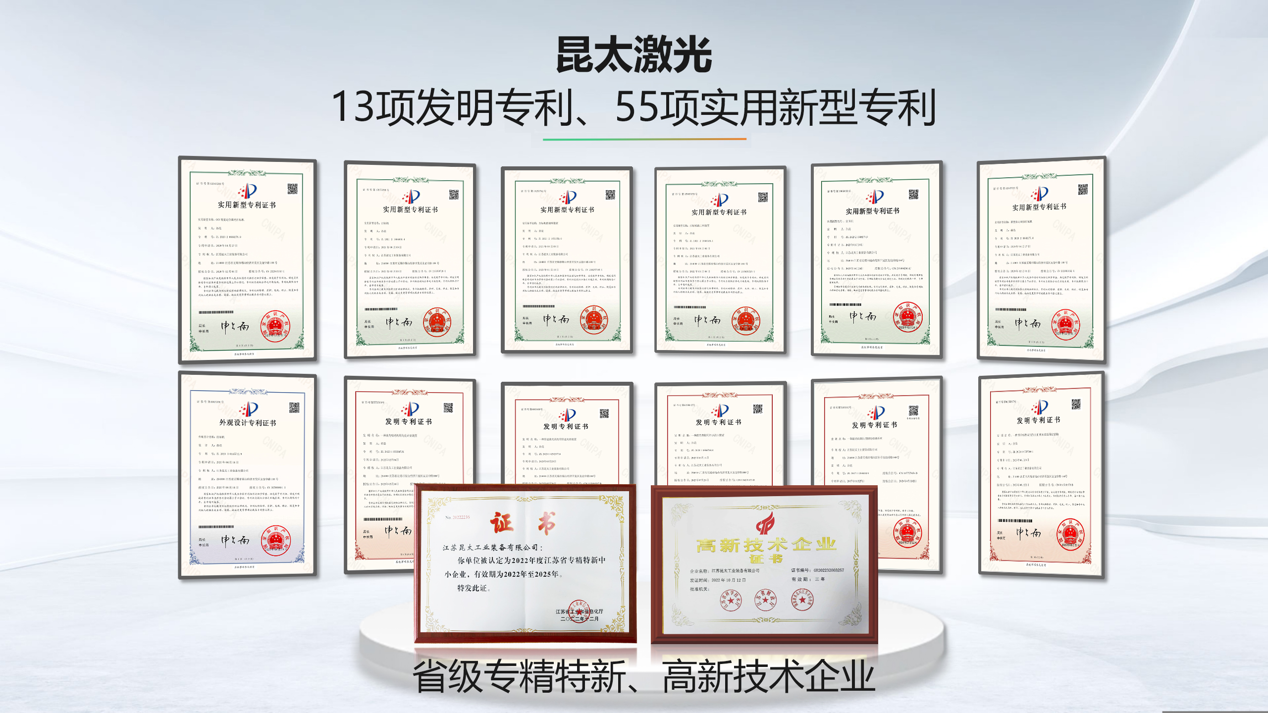 在通過復核的同時,昆太激光研發團隊傳來重磅喜訊:三項發明專利新鮮出爐。